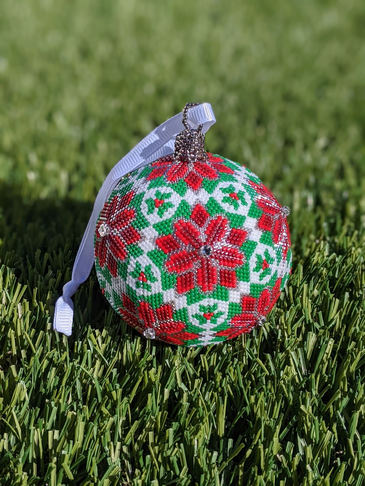 Create a stunning 3D Poinsettia beaded ball with this step-by-step peyote pattern!